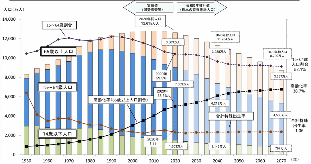厚生労働省によると、日本の人口は近年減少局面を迎えており、2070年には総人口が9,000万人を割り込み、高齢化率は39%の水準になるといわれています。このような少子高齢化社会による労働力不足の他にも、介護との両立に課題を抱える労働者も多く、介護を理由として離職をせざるをえない問題も発生しています。現在、介護をしながら働く人は365万人といわれておりますが、そのうち年間10万人が介護を理由として離職をしています。このことから、介護離職の労働市場への影響は非常に大きく労働者が介護をしながらも働きやすい職場環境を整備していくことが、事業主にとって急務となっています。