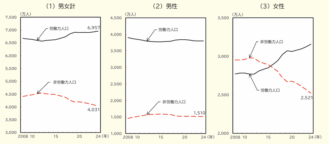 ※厚生労働省「労働力供給の動向」より「労働力人口および非労働職人口の推移」
